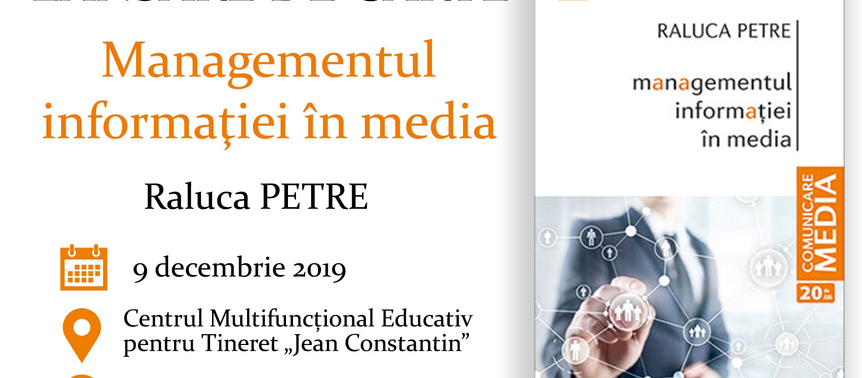 O lansare a volumului „Managementul informației în media” a avut loc, pe 22 noiembrie, la Târgul Internațional de Carte GAUDEAMUS, desfășurat, și în acest an, la Pavilionul expozițional Romexpo. Mai multe informații AICI.