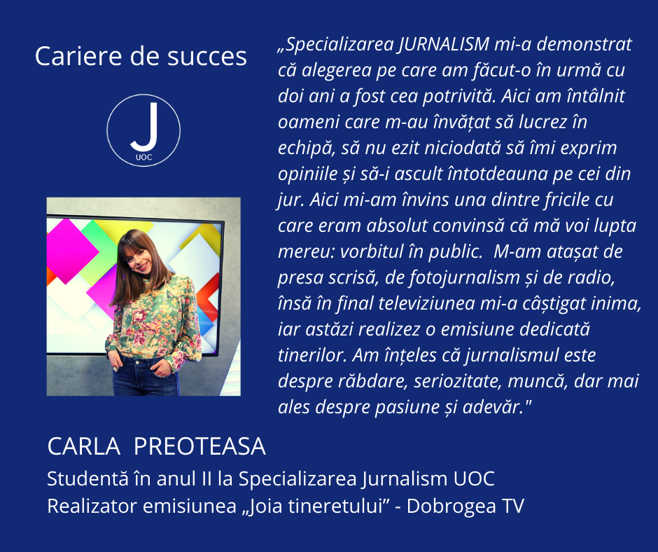 Carla Preoteasa, studentă în anul II la Specializarea Jurnalism UOC, realizator emisiunea „Joia tineretului” – Dobrogea TV