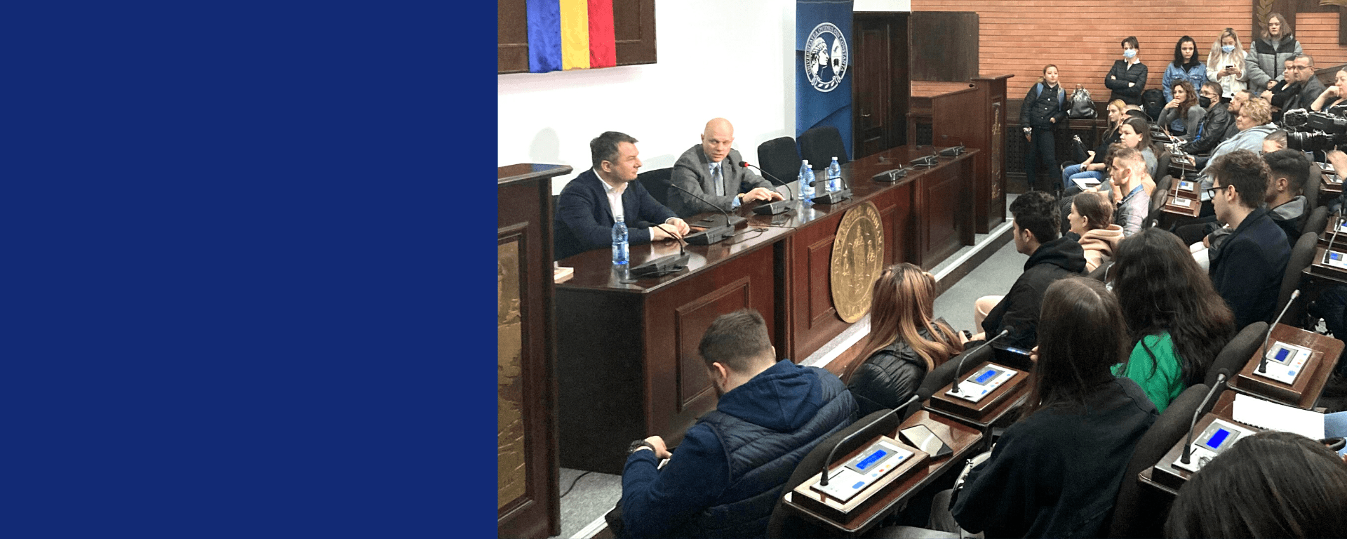 Studenții din anul I ai Specializării Jurnalism din cadrul Universității „Ovidius” din Constanța au participat, recent, la dezbaterea „Putinismul, barbaria ca politică de stat”, avându-l ca invitat pe profesorul Ioan Stanomir. Evenimentul nu s-a constituit într-o conferință clasică, ci într-un dialog, pe de o parte, între Ioan Stanomir și prodecanul Facultății de Istorie și Științe politice a UOC, conf. univ. dr. Daniel Citirigă, și, de cealaltă parte, între Ioan Stanomir și studenții, profesorii, constănțenii participanți la dezbatere, în Sala Senatului, acolo unde a avut loc acțiunea.