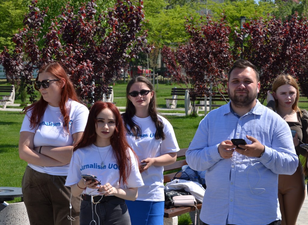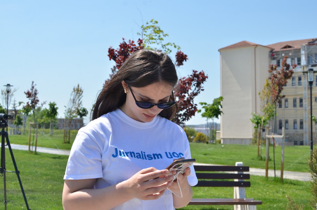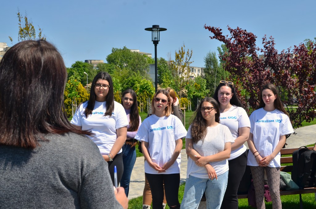 Studenții din anii I și II ai Specializării JURNALISM din cadrul Universității „Ovidius” din Constanța (UOC) au participat, la finalul săptămânii trecute, la un workshop susținut de Ana Maria Stancu, absolventă a specializării și corespondent al Televiziunii Române. La eveniment au partipat și cadrele didactice de la Științe ale comunicării UOC: conf. univ. dr. Raluca Petre, coordonatoarea programului de studii masterale Relații publice și dezvoltare interculturală, lect. univ. dr. Mariana Bafană, coordonatoarea Specializării Jurnalism, lect. univ. dr. Ada Codău și lect. univ. dr. Valentin Vanghelescu. Studenții au aflat, de la Ana Maria Stancu, jurnalist corespondent TVR pentru județele Constanța și Tulcea, cum se realizează o transmisiune live, ce tehnici sunt folosite atunci când intri în direct, care sunt diferitele moduri de realizare a unei astfel de transmisiuni și cum se pregătesc reporterii pentru a apărea în fața camerei. Ulterior, studenții și-au testat cunoștințele acumulate printr-o simulare a unei transmisiuni live, chiar „de la fața locului”. Workshop-ul a avut loc „pe teren”, în Ovidius Park.