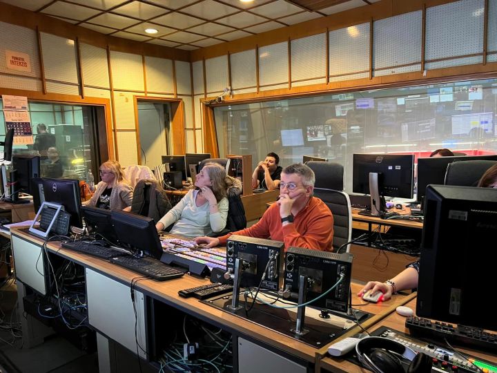 De asemenea, producătorul TVR ne-a arătat cum se realizează regia de montaj pentru o emisiune live sau înregistrată, utilizând sistemul MPS și cum se jonglează cu sursele camerelor și diferite tipuri de conținuturi, precum generice, jingle-uri, materiale montate, grafice.