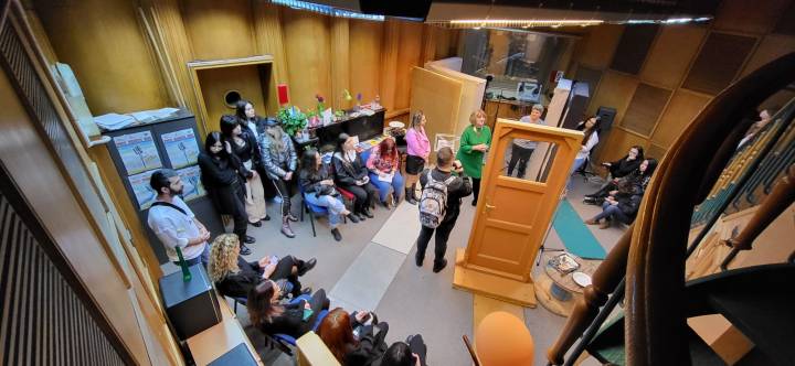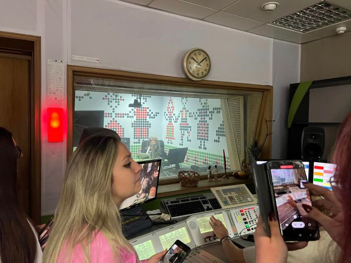 În studiourile Radio România ne-a întâmpinat și Adelina Tocitu, un practician cu o vastă experiență pe calea undelor, absolventă și, totodată, fost cadru didactic asociat la Specializarea Jurnalism a UOC. Adelina Tocitu a lucrat o lungă perioadă de timp la Radio Constanța, iar din 2019 este redactor București FM. Adelina ne-a plimbat prin mai multe studiouri, pentru ca noi să înțelegem exact ce anume presupune munca oamenilor de radio și ce implică transmisiunea în direct.