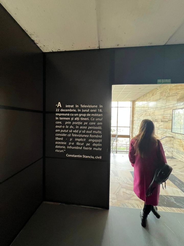 În vizita de documentare de la TVR am fost, de asemenea, și în Studioul 4, cunoscut și ca Studioul Revoluției Române, pentru că din Studioul 4 al TVR s-a anunțat că regimul Ceaușescu a căzut. În foaierul Studioului 4,cei de la TVR au amenajat un spațiu expozițional cu fotografii care surprind momentele cheie ale Revoluției Române transmise în direct, dar și cu citate ale participanților la evenimente, inscripționate pe pereți, care descriu încărcătura emoțională a acelor timpuri. Zilele în care de la pupitrul Studioul 4 s-au relatat evenimentele legate de căderea regimului comunist marchează, de asemenea, și primele emisii ale instituției media ca televiziune liberă. Alexandra Vălimăreanu ne-a evocat un moment în care jurnaliștii TVR și-au pus viața în pericol, atunci când, sub presiunea timpului și a rafalelor de gloanțe, în traversarea pasarelei dintre Turnul televiziunii și Studioul 4, studioul de știri de la acea vreme, au transportat casetele beta „mergând pe burtă”. Urmele gloanțelor pe clădire se pot observa și astăzi. În prezent, acest studio este utilizat pentru filmările cu tehnologia chroma key și poartă numele fostului jurnalist sportiv Cristian Țopescu.