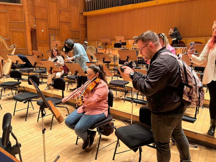 În drumul nostru spre Studioul de Teatru „Mihai Zirra”, ne-am întâlnit cu violonistul Virgil Rădulescu, artist instrumentist din Orchestra de muzică populară Radio România, care, spontan, ne-a încântat cu notele vioarei, interpretând un fragment dintr-o baladă.