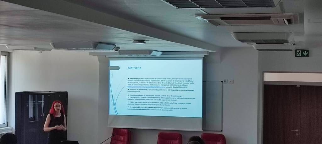 Nu mai puțin important, în contextul manifestării științifice, tinerii cercetători au avut oportunitatea de a participa la un panel de discuții pe tema „Media, Communication and Artificial Intelligence (AI)”. Moderatori au fost conf. univ. dr. Raluca Petre și conf. univ. dr. Romina Surugiu de la FJSC.