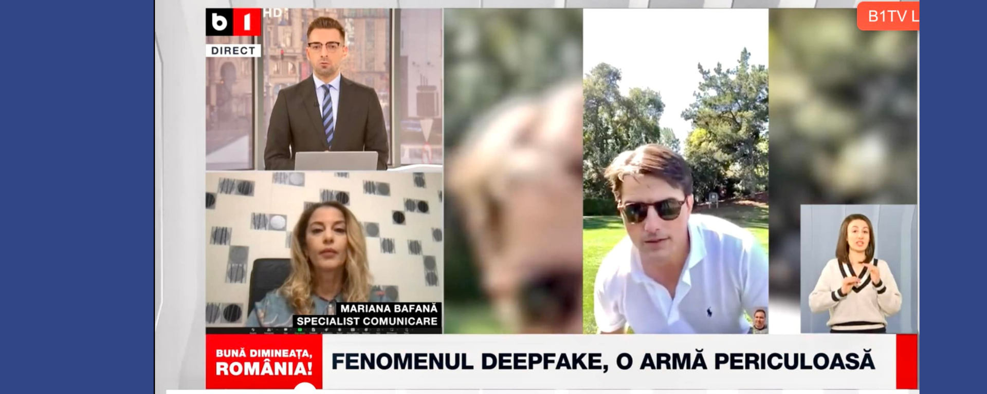 Reporter: „Și, atunci, ce ar trebui să facem, doamna Bafană, ca să fim instruiți, să putem să discernem între o informație fake, până la urmă, între o informație falsă, un deepfake din acesta și o informație reală, adevărată?
