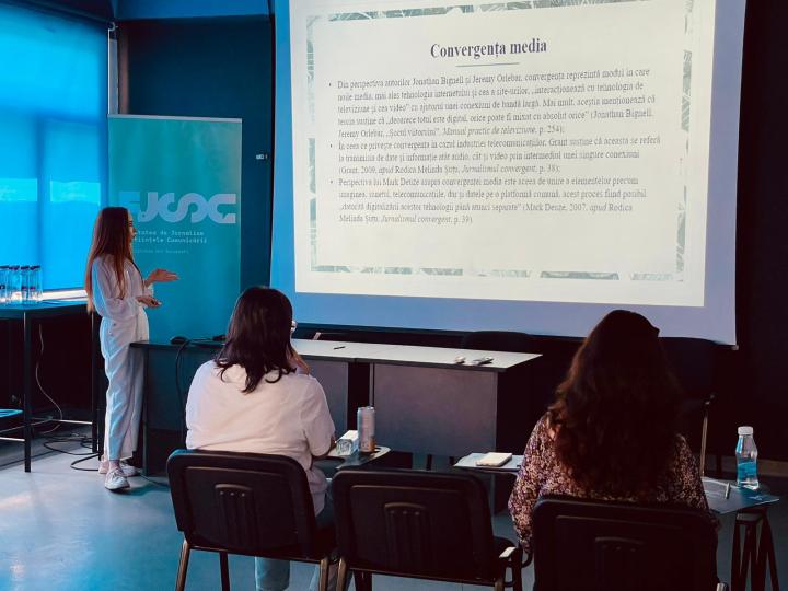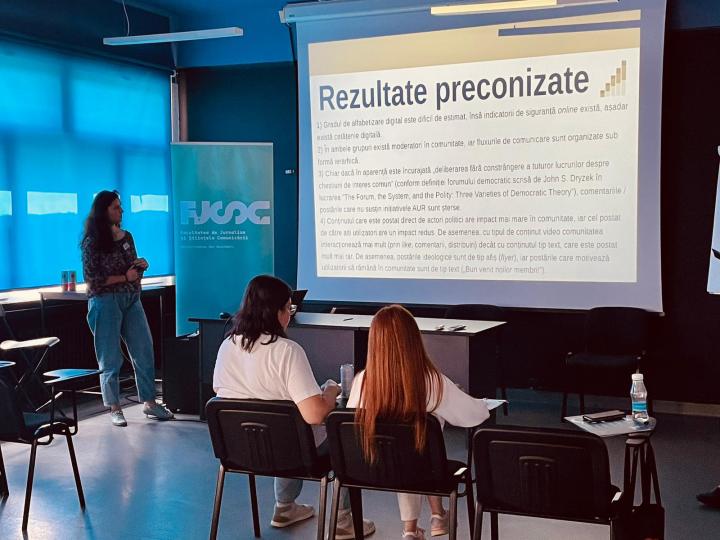 Studenţii de la Jurnalism UOC au prezentat, la conferinţa studenţească organizată de FJSC, cercetări coordonate conf. univ. dr. Raluca Petre, lect. univ. dr. Mariana Bafană, lect. univ. dr. Valentin Vanghelescu şi lect. univ. dr. Ada Codău. Andreea Ştefan a prezentat lucrarea „Comunitățile virtuale și paginile sociale dedicate cetățeniei active. Utilizările participării civice digitale”, Ana Maria Popa – „Jurnalismul narativ în presa din România. Studiu de caz: publicația Decât o Revistă”,Ana Maria Huzum – „Persuadare și reglementare – Cazul OTV”, Adriana Basarabă – „Convergența media în cadrul știrilor de televiziune în contextul războiului din Ucraina”, iar Adrian Anton – „Sustenabilitatea presei locale. Analiză comparativă între sistemul din Norvegia și cel din România”.