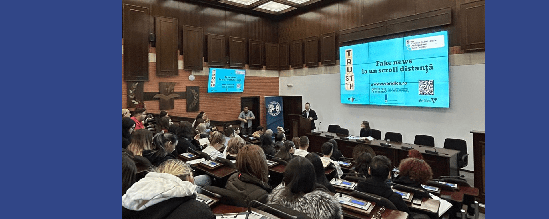 Alexandra Marin este studentă în anul III la Jurnalism şi spune că participă cu plăcere la dezbateri despre fake news ori de câte ori există această posibilitate: „Din punctul meu de vedere, evenimentele pe tema fake news sunt esențiale, mai ales pentru tineri, fiind cei mai mari consumatori de social media. Suntem în an electoral și știrile false ne pot influența alegerile, deci trebuie să învățăm să recunoaștem o știre falsă atunci când o întâlnim, pentru a nu cădea în plasa dezinformării. M-am bucurat să particip din nou la un eveniment organizat pe această temă și o voi face ori de câte ori voi avea ocazia”.
