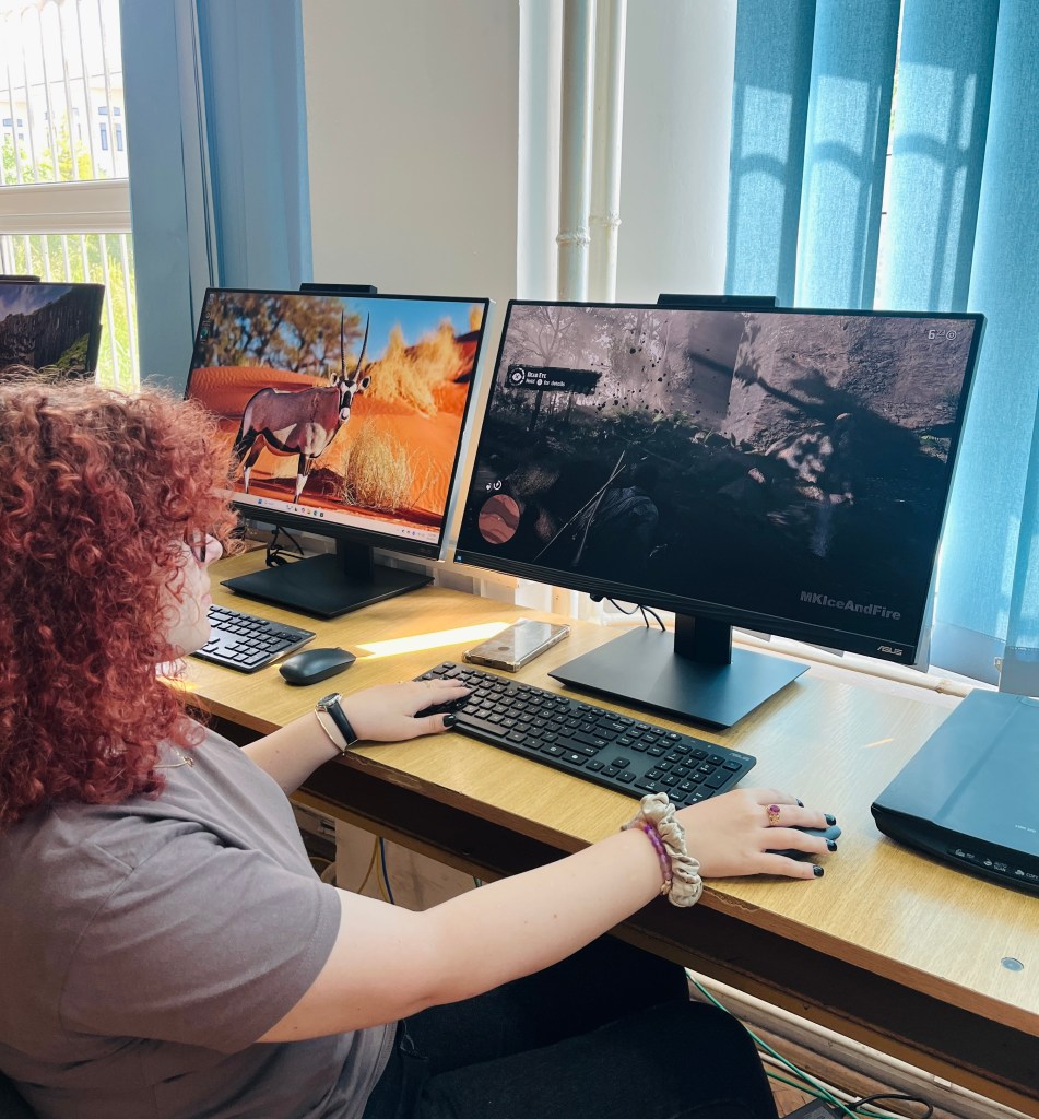 Am stat de vorbă şi cu unii dintre colegii noştri mai mari de la Jurnalism UOC. De exemplu, Miruna Turtoi, studentă în anul II, este foarte pasionată de jocurile video: „Gamingul este o pasiune pe care o am de când eram mică, ajungând să fie o constantă a vieții mele. De la jocurile 2D – unde tot ce trebuia era să apăs pe săgețile sus-jos, stânga-dreapta – cum ar fi Sonic the Hedgehog, pe parcursul anilor am acumulat o colecție atent aleasă, din care fac parte jocuri precum Red Dead Redemption 2, Slay the Princess și The Sims 3, printre multe altele”, ne-a spus Miruna.