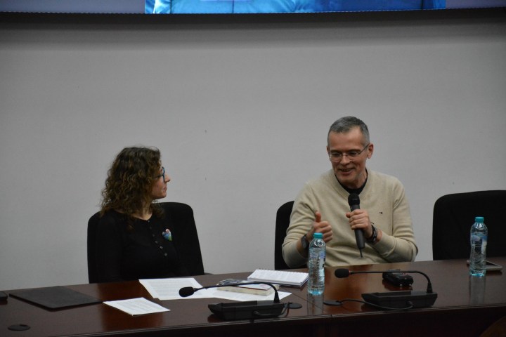 Echipa de la Ştiinţe ale comunicării din cadrul Facultăţii de Litere a Universităţii Ovidius din Constanţa (UOC) a organizat, săptămâna trecută, lansarea volumului „În direct din linia întâi”, semnat de jurnalistul Adelin Petrişor şi apărut, recent, la Editura Polirom. Evenimentul s-a desfășurat în Sala Senatului a UOC, iar alături de profesorii şi studenţii de la programul de studii de licenţă Jurnalism şi de la programul de studii masterale Relaţii Publice şi Dezvoltare Interculturală, la lansare au participat şi studenţi şi cadre didactice de la alte specializări ale Facultăţii de Litere, de la Facultatea de Istorie şi Ştiinţe Politice și de la Academia Navală „Mircea cel Bătrân” Constanţa, precum și elevi de la Liceul Teoretic „Traian” din Constanța. Aceștia au avut ocazia să-l cunoască pe jurnalistul care, în cele trei decenii de carieră în televiziune, a reușit să surprindă cu obiectivul mai multe zone de conflict de pe glob, calamități naturale, dar şi cele mai grele momente de la debutul pandemiei de COVID-19.