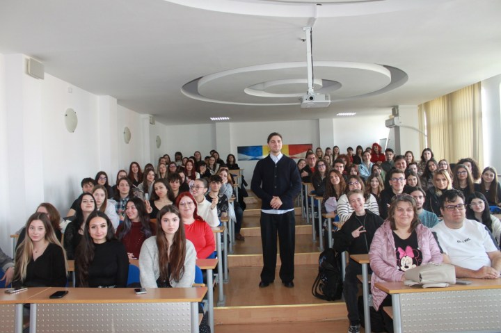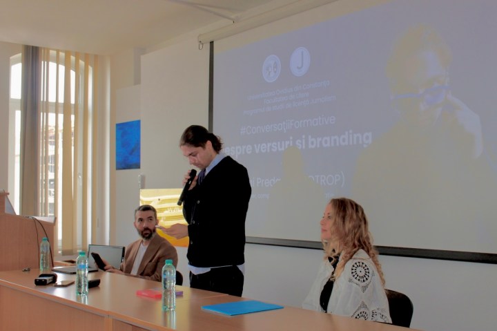 Programul de studii de licenţă JURNALISM din cadrul Facultății de Litere a Universității Ovidius din Constanța (UOC) a organizat, săptămâna trecută, o nouă întâlnire din seria „Conversații formative”, avându-l ca invitat pe Mihai Preda, cunoscut în rândul tinerilor sub numele de Psihotrop. Evenimentul s-a desfășurat în Amfiteatrul Umberto Eco, iar alături de profesorii și studenții de la programul de studii de licență Jurnalism și de la programul de studii masterale Relații publice și dezvoltare interculturală, au fost și studenți de la alte specializări ale Facultății de Litere, de la alte programe ale UOC, precum și elevi de la Liceul Teoretic „Ovidius”, Liceul Teoretic „Traian” din Constanţa și Liceul Tehnologic „Lazăr Edeleanu” din Năvodari. Tinerii au avut astfel prilejul de a-l cunoaște pe rapperul care s-a remarcat prin ideea sa autentică de a transpune operele literare obligatorii pentru examenul de Bacalaureat în piese hip-hop. În contextul evenimentului organizat de echipa de la Ştiinţe ale comunicării UOC, Mihai Preda a intrat în dialog cu lect. univ. dr. Mariana Bafană despre satira din versurile sale și cu lect. univ. dr. Valentin Vanghelescu despre construcția brandului personal.